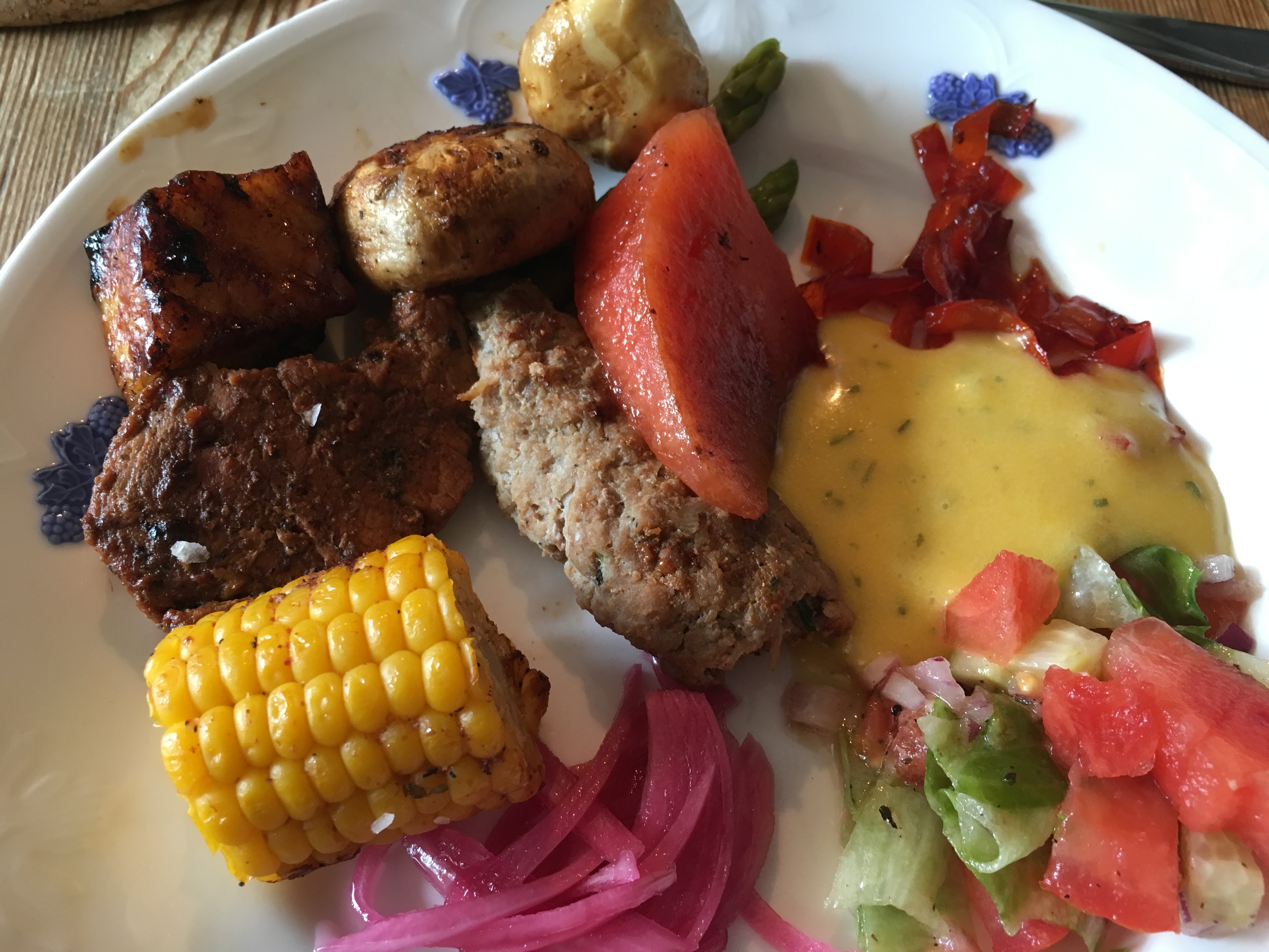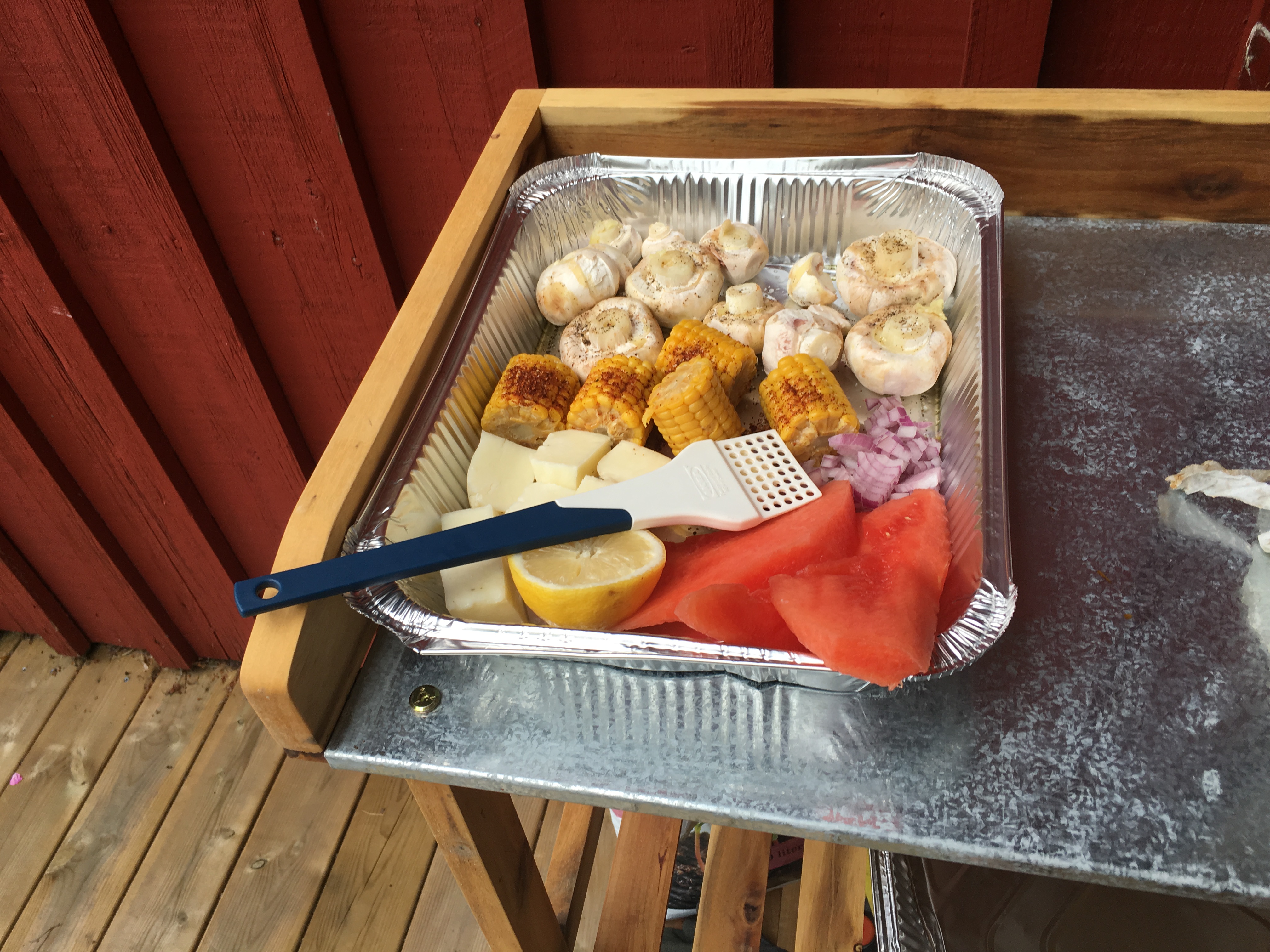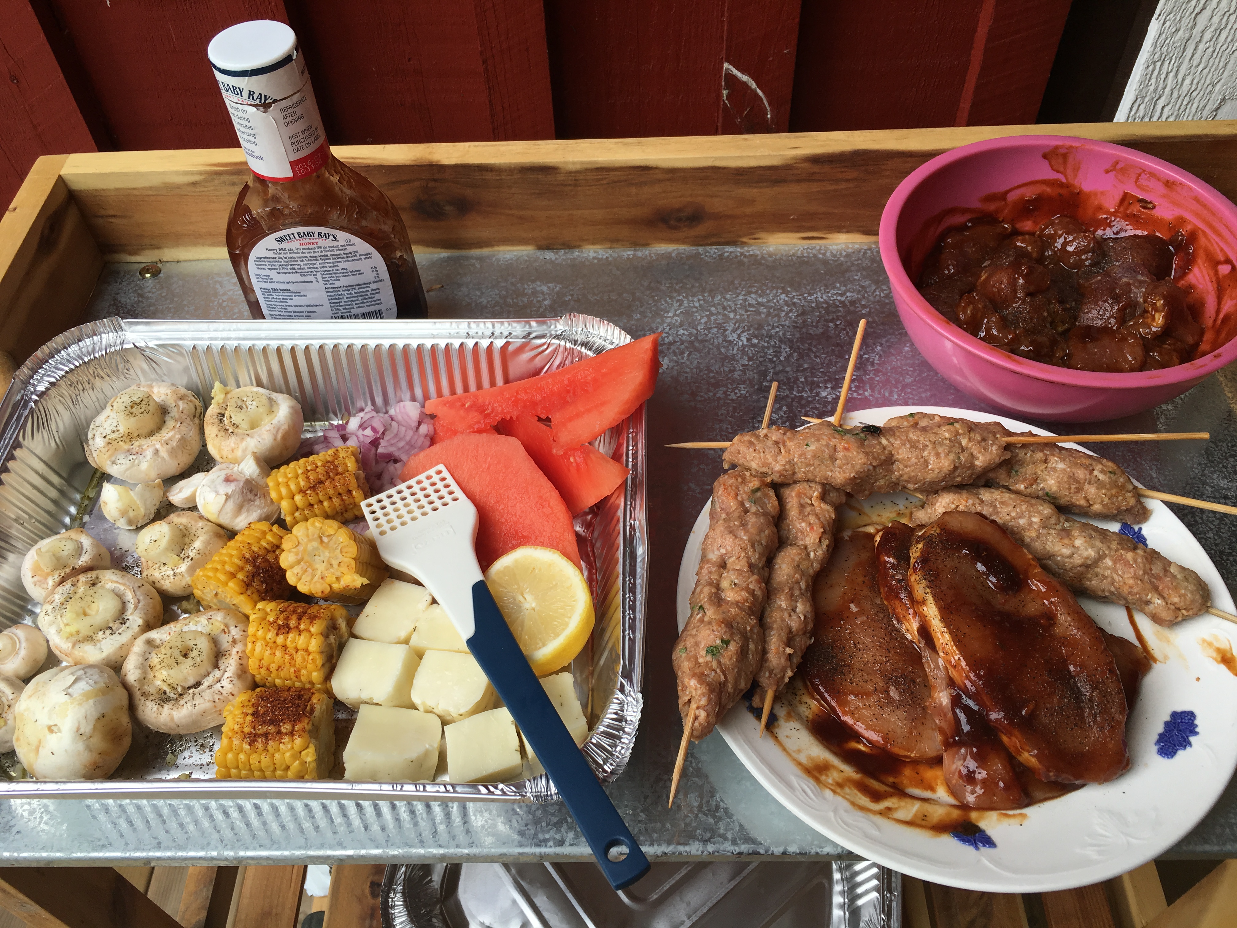 Efter att ha dukat upp ett gigantiskt midsommarbord med rökt ålandslax, sill, kokt nypotatis, gräslök, gräddfil, såser, grillat, salt kött, åländskt knäckebröd, åländsk ost, sallad och diverse nubbar satte vi oss ute i trädgården.