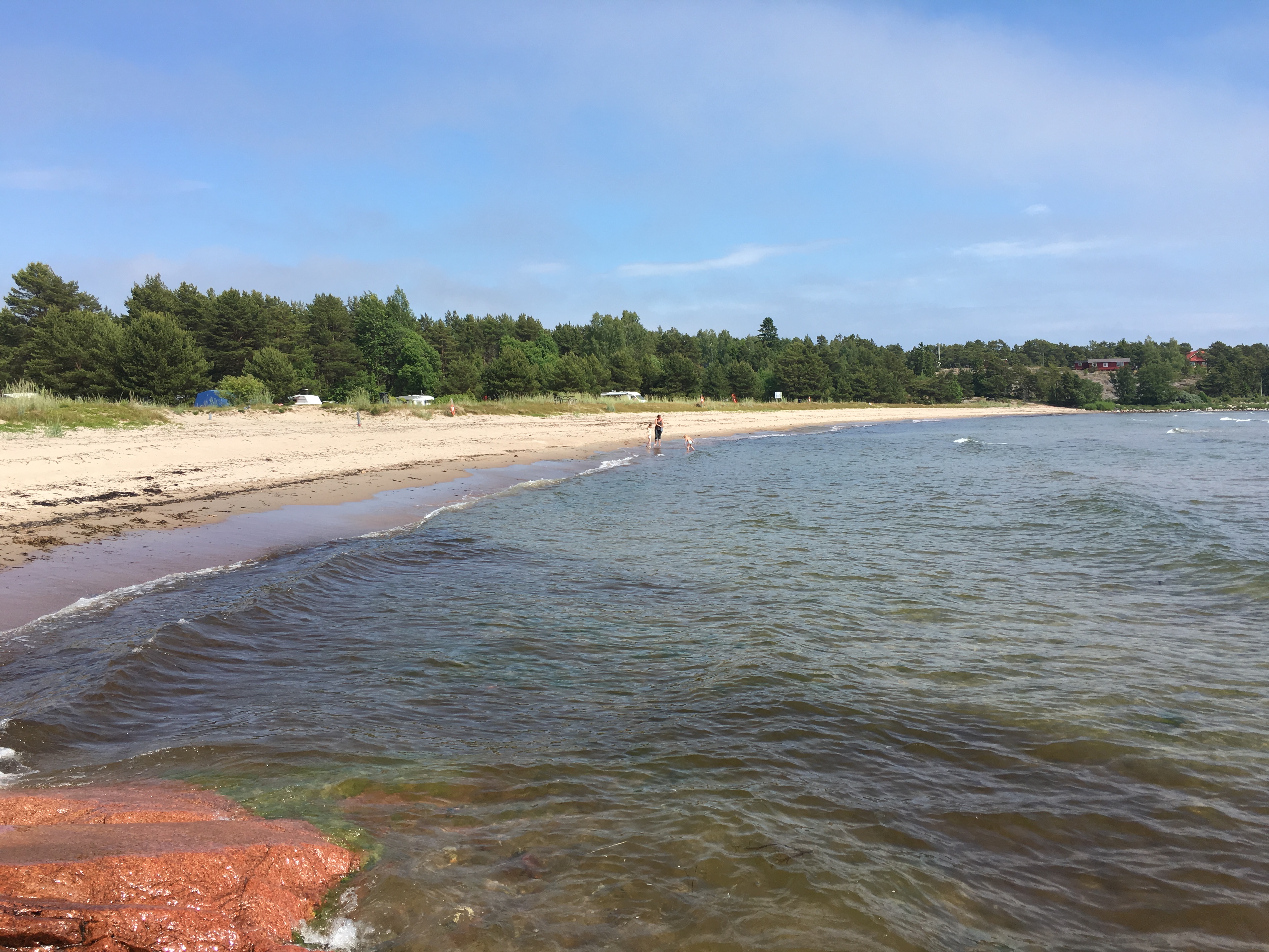 Men här finns också vidsträckta kala klippor, urskogar, långa sandstränder, grottor som vetter ut mot havet och bergsknallar som badar i kvällssolen. Det är något särskilt med den här ön som är svårt att sätta fingret på, men förra veckan var jag tillbaka för tredje gången på lika många år för att fira midsommar tillsammans med goda vänner. Vi hann med både picknick på sandstranden i solnedgången, omgiven av påfåglar (en särskild liten park, Lilla Holmen med kaniner och många olika fåglar som går lösa men som stängs in på kvällen) och jag tog även en tur till Degersand, en plats som enligt engelska guideböcker benämns som Europas ”finaste men även hemligaste” sandstrand.
