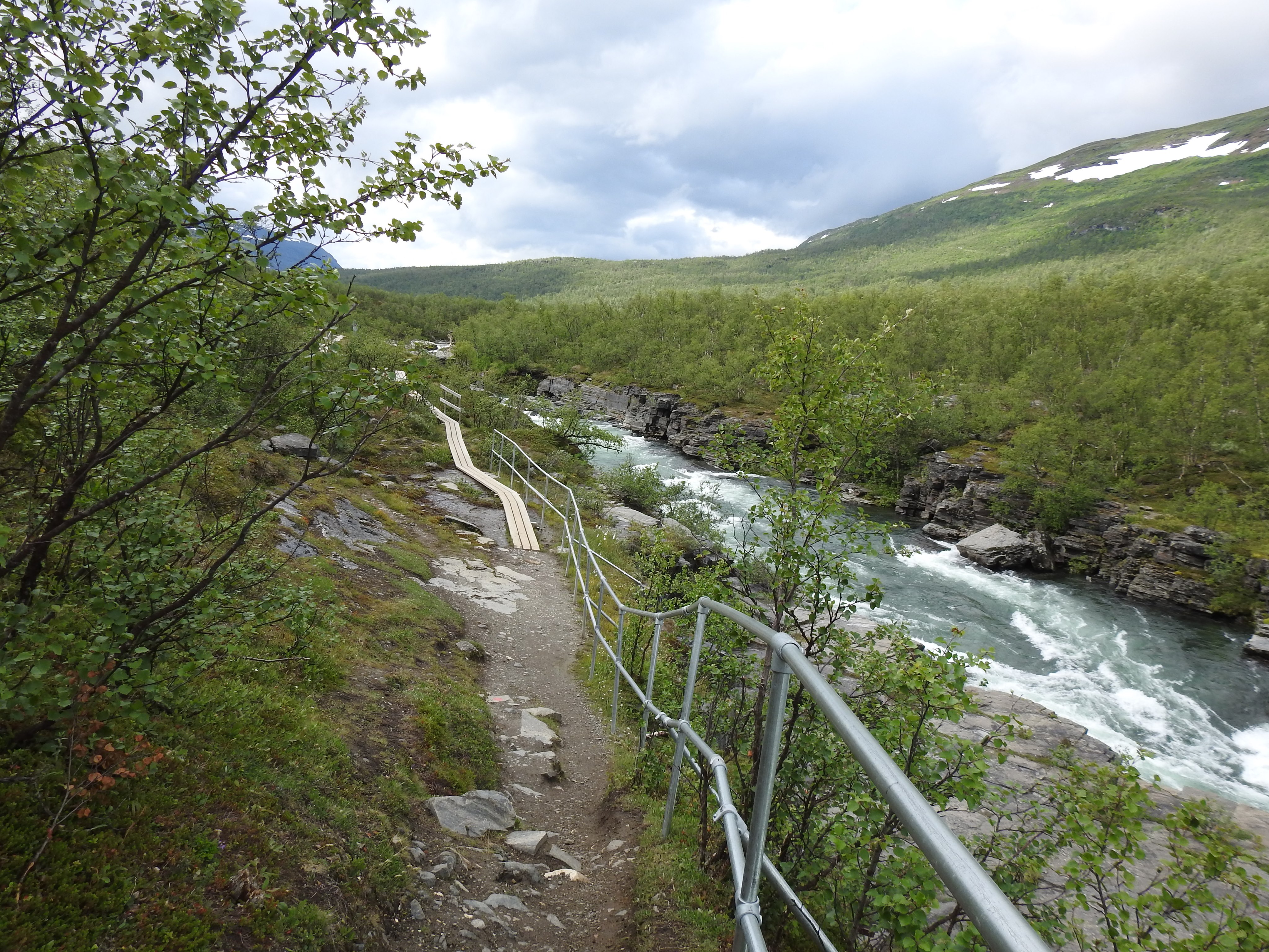 Det är lite förvånande, vandringen som börjar tvärs över järnvägsspåren från Abisko turisthotell, är en av de enklaste. Därför uppenbarligen populär bland barnfamiljerna. Det är en sträcka på cirka 5-6 kilometer tur och retur och jag har dagen innan sett det mäktiga Kårsafallen och för trött att ta mig till Trollsjön som var planen, så tänker att jag går leden mest för att ha något att göra. Men det blir en av de finaste upplevelserna på hela resan.