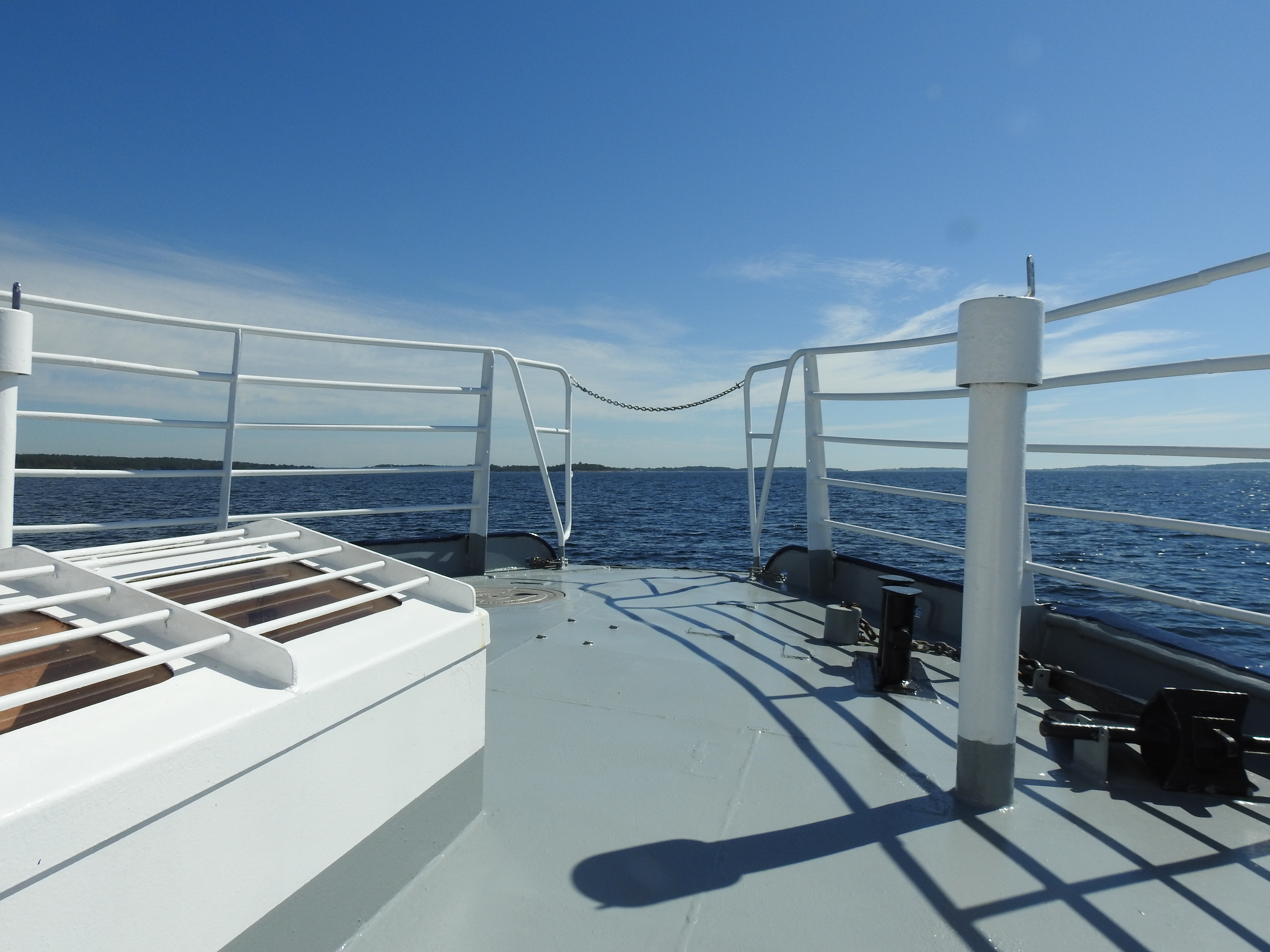 Första ön jag åker till är en ö som heter Tärnö. Jag tar tåget till Karlshamn från Sölvesborg och har egentligen siktet inställt på Tjärö som ska vara en av de vackraste och mest idylliska öarna i skärgården enligt alla recensioner, men när jag kommer fram till kajen står där en klunga människor som väntar på färjan till – ja just Tärnö. Så jag ändrar snabbt mina planer. Tärnö är den största och ytterst belägna ön i Hällaryds skärgård i Karlshamns kommun. Resan ut går som en dans på en halvtimme tack vare den otroligt trevliga personalen på båten som det visar sig kör samma sträcka hela dagen, och som tillåter att folk sätter sig i framme i fören som annars kan vara avspärrad. Styrman pratar bort en god stund med passagerarna innan han gör sig beredd med båtshaken för att lägga till vid bryggan.
