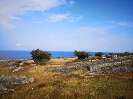 Det är mol tyst, vindstilla, kvavt och solen har gått i moln. Havet glittrar azurblått likt Medelhavet vid horisonten. Semestrande turister har svämmat in över ön och för bara en halvtimme sedan strålade solen och temperaturen låg runt 27 grader. Inte längre. Jag klättrar omkring på kala klippor, avsatser och över stenblock vid Drakmärket i gympaskor, shorts och med ryggsäcken på ryggen. Följer de spännande historier och sägner som tycks finnas överallt i den blekingska skärgården, så även på Hanö. Enligt en legend ska den slingrande urgröpningen i berget jag följer ha uppkommit när den första fyren tändes. Det fanns nämligen en drake som varje natt hade för vana att flyga mellan Tärnö utanför Karlshamn och Hanö, en sträcka på två mil som draken kunde klara på endast två vingslag. Men pooof, när fyren tändes för första gången och dess ljus spelade ut över havet, blev draken så förblindad och desorienterad att han störtade rakt in i bergsväggen. Därav namnet på platsen och grottan. Jag hinner precis fram, sedan kommer regnet.