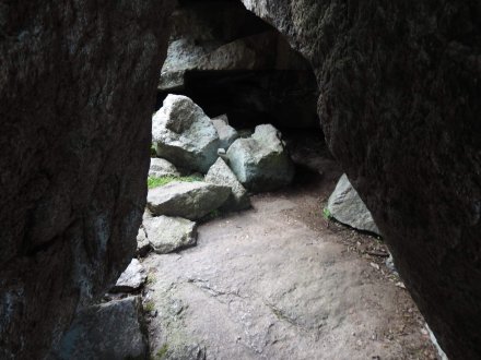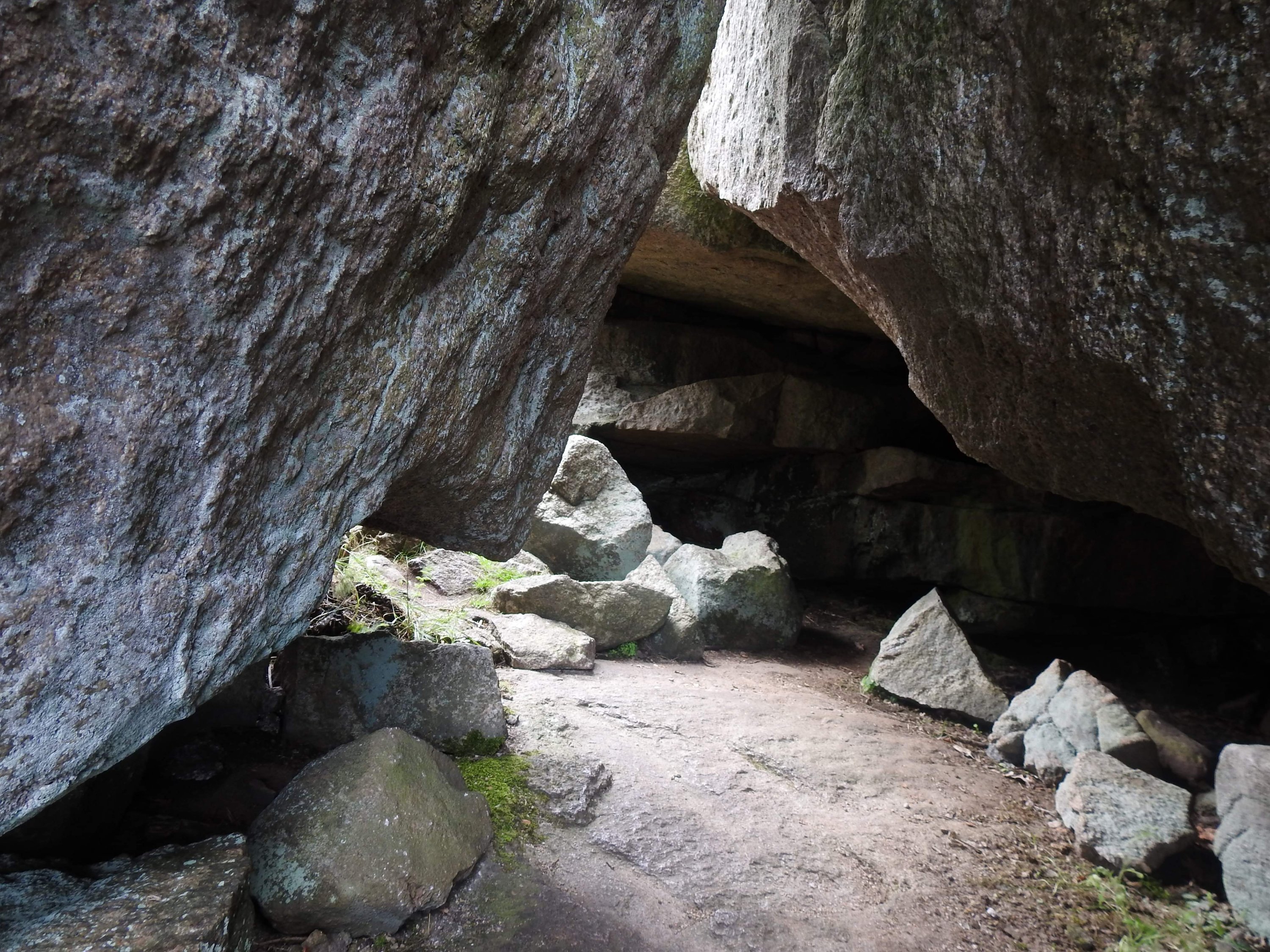 Det finns många sällsamheter i Blekinge och många sägner och legender kring öarna i skärgården. Tillbaka till dessa klippblock och skrevor som jag klättrar omkring bland i plötsligt ösregn innan jag upptäcker ingången till den lilla grottan. Stenbumlingar ligger märkligt utplacerade i landskapet som om någon kastat dem huller om buller och rivit upp berggrunden. Men det är så klart spåren efter drakens kraschlandning när han flög emellan de båda öarna.