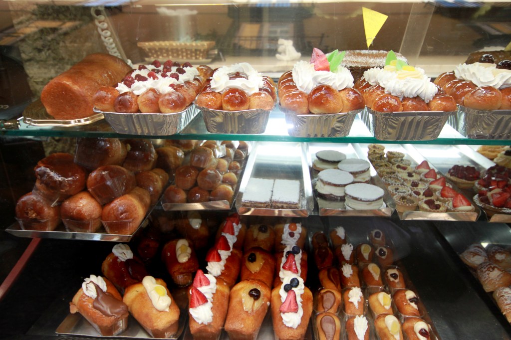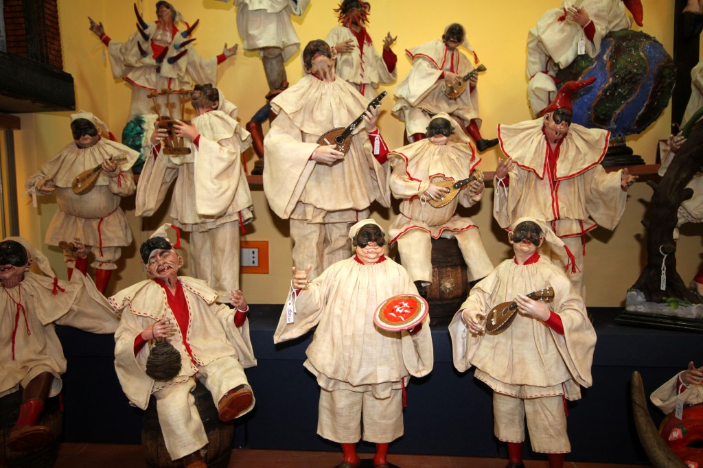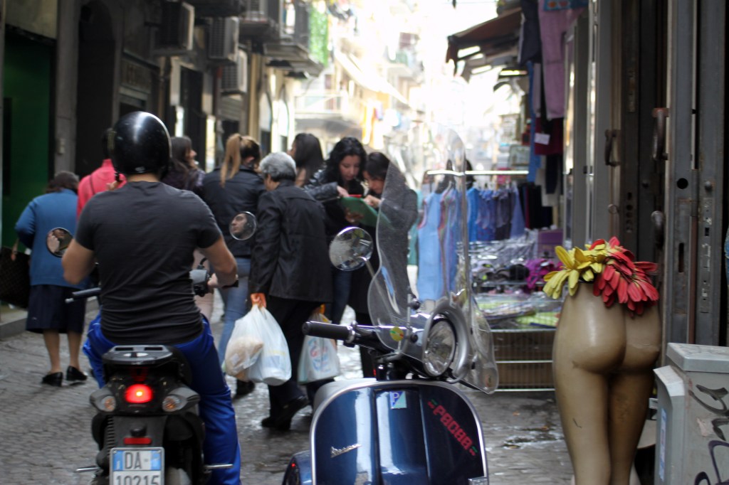 Han visar oss runt via dei Tribunali med alla träsnidare, hantverksbutiker och affärer som säljer allt från billiga turistprylar till Pulcinelladockor. Pulcinella är en skojare, en gycklare i svart mask och vita kläder som är speciell för Neapel. Alla stannar till och hälsar trots trafiken.