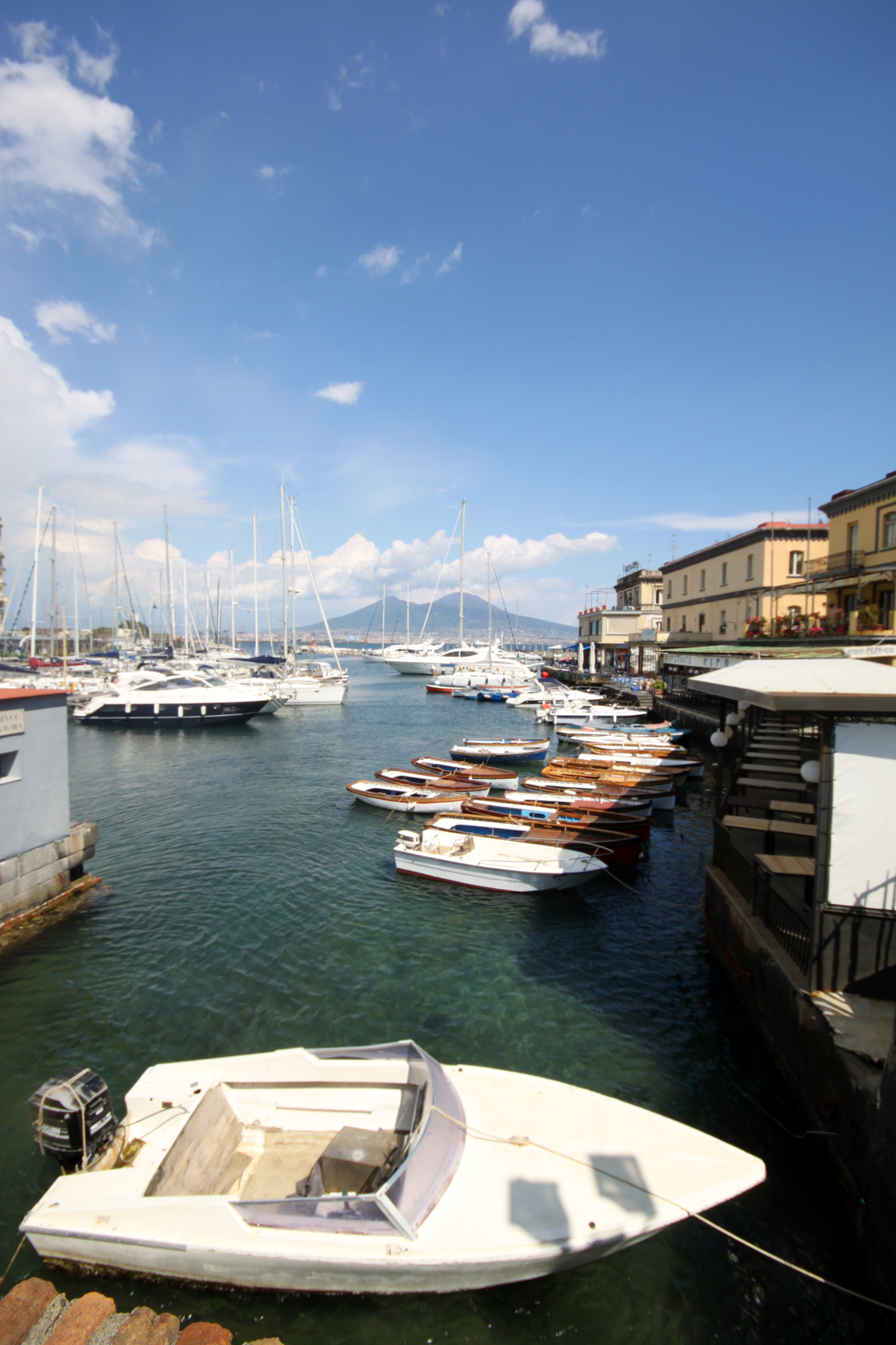 På kvällen sitter vi på en liten uteservering nära havet. Ett sammetslent mörker har fallit och månen lyser över Neapel. På gatorna susar vesporna förbi i skytteltrafik. En italienska tar in tvätten hon hängt på tork. Från gatan hörs fiolmusik. Den svaga doften av mogna citroner når oss med vinden. Restaurangen är fullsatt och volymen hög. Vi får våra enorma pizzor och en hel flaska vin för under hundralappen. Smält mozzarella, söta körsbärstomater och färsk basilika. Himmelskt. Amalfikusten ligger bara ett stenkast bort. Se Neapel och sedan dö är ett gammalt uttryck.