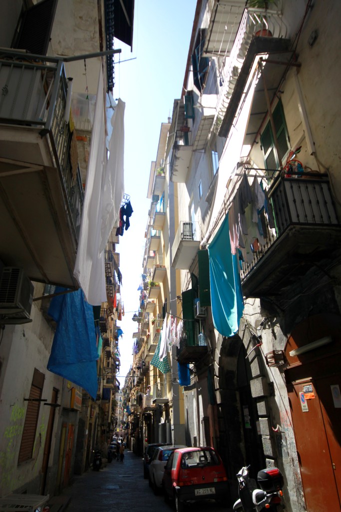 Det märks redan när jag tar en taxi från centralstationen till det lilla familjeägda B&B mitt inne i röran som utgör Centro Storico, Gamla stan och där jag ska bo. Taxichauffören sjunger napolitanska sånger kör som om det gällde livet i de små kullerstensgränderna och stannar till för att fråga om vägen innan gränden blir så smal att bilen fastnar. Hela gatan engagerar sig, en chic italienska i klänning på vespa, en gammal dam som kommer ut ur köket ur sin basso efter att ha lagat mat. Diskussioner utbryter.