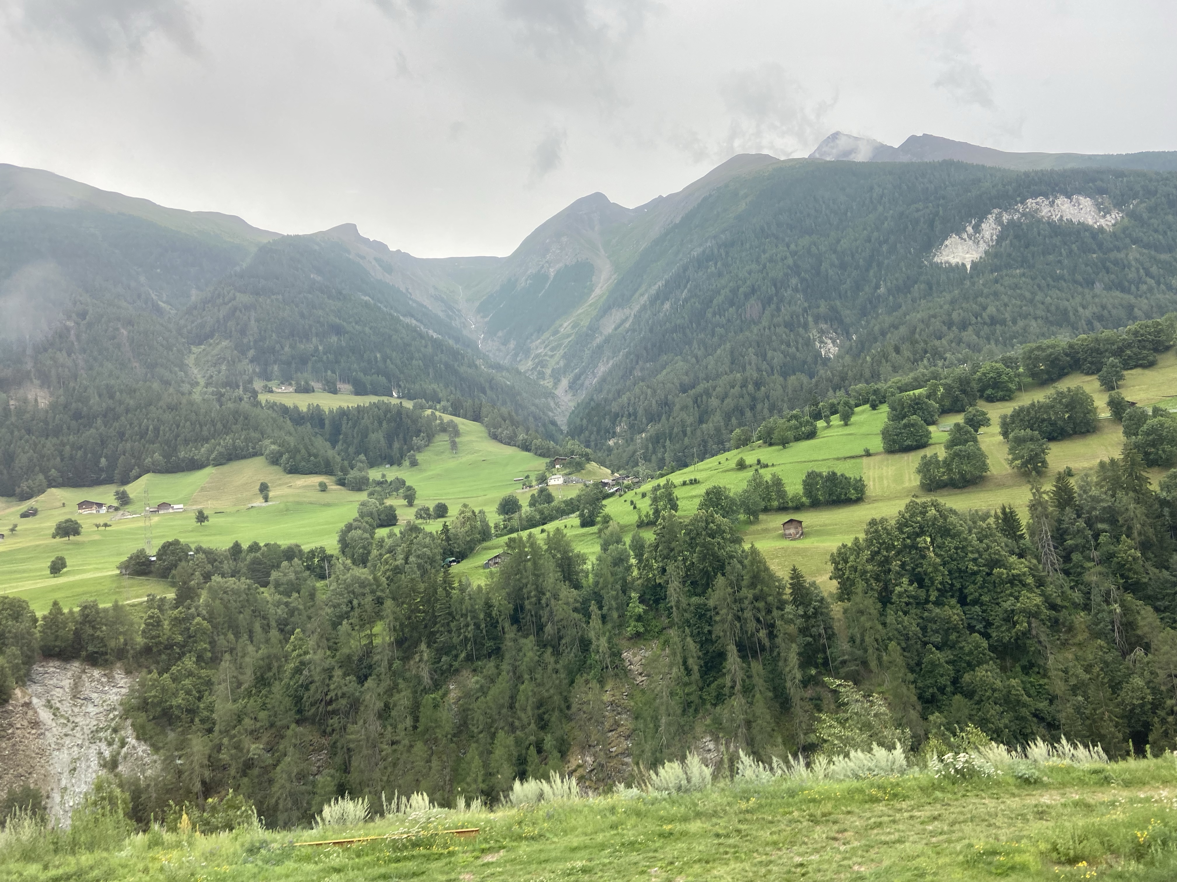 Dagen efter; smaragdgröna slänter och bergssidor, blommande alpängar, skimrande floder som kastar sig nerför sluttningarna, berg med snövita toppar som sovande jättar i bakgrunden. Raviner, djupa avgrunder där linbanor svävar ut på silversträngar som på håll ser ut som tunna spindeltrådar. Att åka tåg från Zürich via Chur till Zermatt är en studie i ett nästan overkligt vackert och vilt landskap. Som på film. Men så är Schweiz också en plats där vildmarken och bergen finns alldeles inpå knuten. Ett land med 26 autonoma kantoner och fyra officiella språk; tyska, franska, italienska och rätoromanska. Ett land som fick kvinnlig rösträtt sent – 1971. Det land efter Japan där invånarna blir äldst.