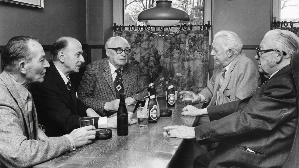 Hösten 1979. Från vänster Thormod Larsen, Börge Rönne, Carl Palm, Ove Bruhn och Erling Kjær. Okänd fotograf.
