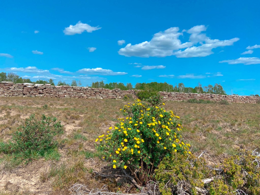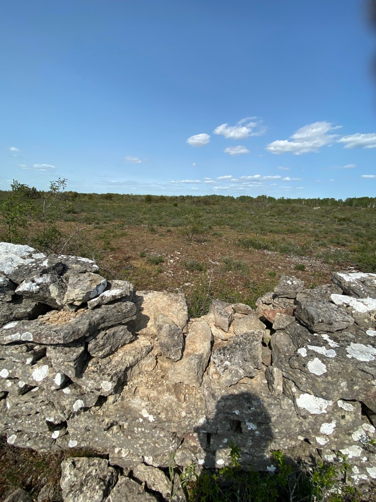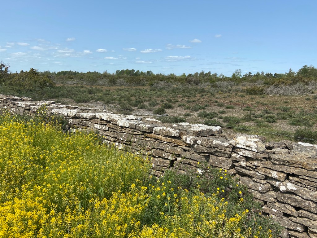 Tiden stannar när man är ute och vandrar på alvaret. Det förgångnas röster viskar i vinden och spåren från det förflutna finns överallt, inte minst i form av vittrande kalkstensmurar. Minnen av vandringar med mamma (och pappa, bror) kommer tillbaka och vetskapen om hur mycket hon älskade Öland. Göken hörs igen när jag parkerar cykeln och ger mig ut. Himlen är hög och lysande blå, en fågel piper enträget ur närmaste enbuske och här och var syns röda fläckar av den kalkhaltiga jorden. Det är bedövande vackert. Ensamhet. Oändlighet. Ljus. Kärlek. Ingen annan mänsklig varelse är i närheten bara den öppna horisonten.