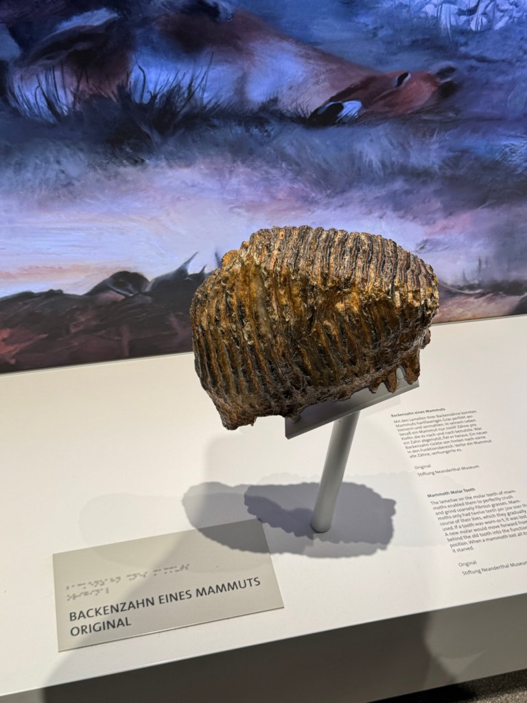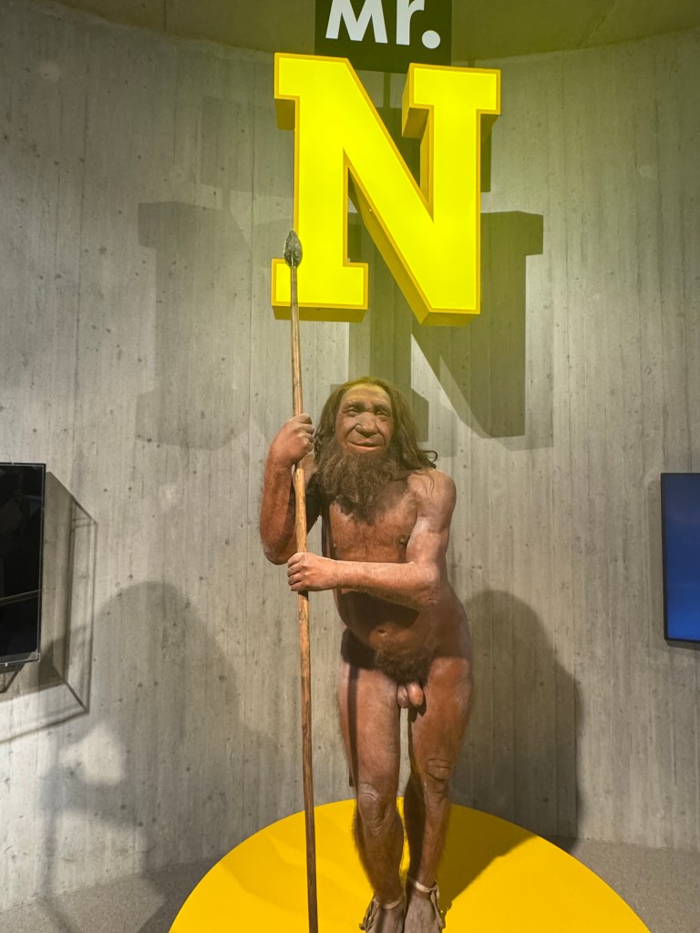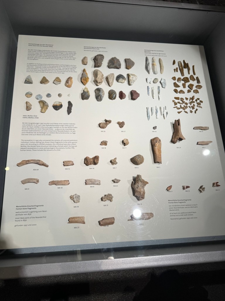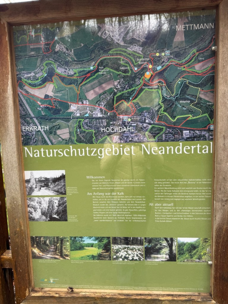 Platsen i Mettmann ståtar med ett stort naturreservat och ett intressant museum. Det är ett välbesökt (åtminstone den dagen vi kommer) museum som renoverades för några år sedan. Här varvas informationsskyltar och kopior (ibland äkta fynd) av skelettdelar, flintredskap och djurben som är tiotusentals år gamla med tematiska spår genom lokalerna som behandlar ämnen som nutid-framtid, lek och familj, döden och begravning, jakt och mat. Här finns interaktiva stationer och rekonstruerade versioner/dockor av förhistoriska människor. Men också små miniatyrskåp som visar arkeologiskt analysarbete, alltså vad som händer efter att någonting grävts fram ur marken. I ett hörn finns ett avspärrat område av sand och jord – en arkeologisk utgrävning.